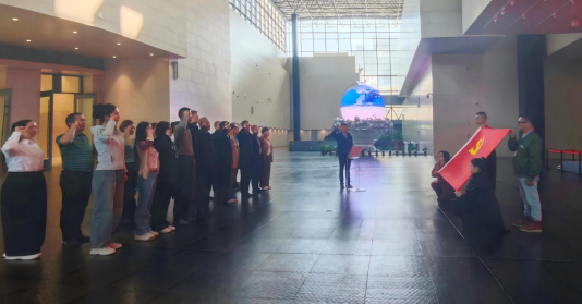 活动在庄严的重温入党誓词仪式中开始。全体党员面向党旗,高举右拳,誓言铿锵,久久回响于新疆美术馆大厅,充分体现了全体党员对党忠诚、不忘初心、牢记使命的坚定政治本色。
