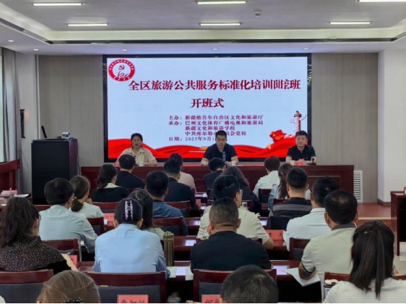2025年9月1日-6日,由自治区党委组织部审核备案的全区旅游公共服务标准化培训班在巴音郭楞蒙古自治州库尔勒市举行。全区14个地州市文旅系统53名相关负责同志齐聚一堂,开展交流学习。
