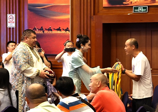 喀什地区歌舞剧团的演员们还带来了精彩的文艺表演,主持人与观众积极互动,现场气氛热烈。作为喀什地区的特色礼物,精美的花帽和绚丽的艾德莱斯丝巾更是让大家感受到了喀什的独特魅力。主持人代表喀什向广东人民发出了热情邀约,欢迎大家前往喀什,亲身体验那里别具一格的风土人情与浓郁的民族文化底蕴。