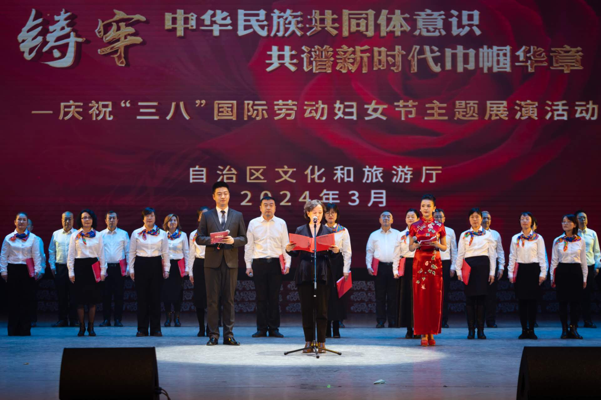 3月7日,“铸牢中华民族共同体意识,共谱新时代巾帼华章”——庆祝“三八”国际劳动妇女节主题展演将节日的庆祝氛围推向高潮。厅系统240余名干部职工欢聚一堂,共庆佳节,自编自演的舞蹈、歌曲、朗诵、走秀等一个个精彩节目轮番上演,其中还穿插着展现文旅行业特色与魅力的情景剧表演等节目,现场气氛高潮迭起。厅长古丽·阿不力木还向厅系统全体妇女干部职工送上节日寄语与祝福。