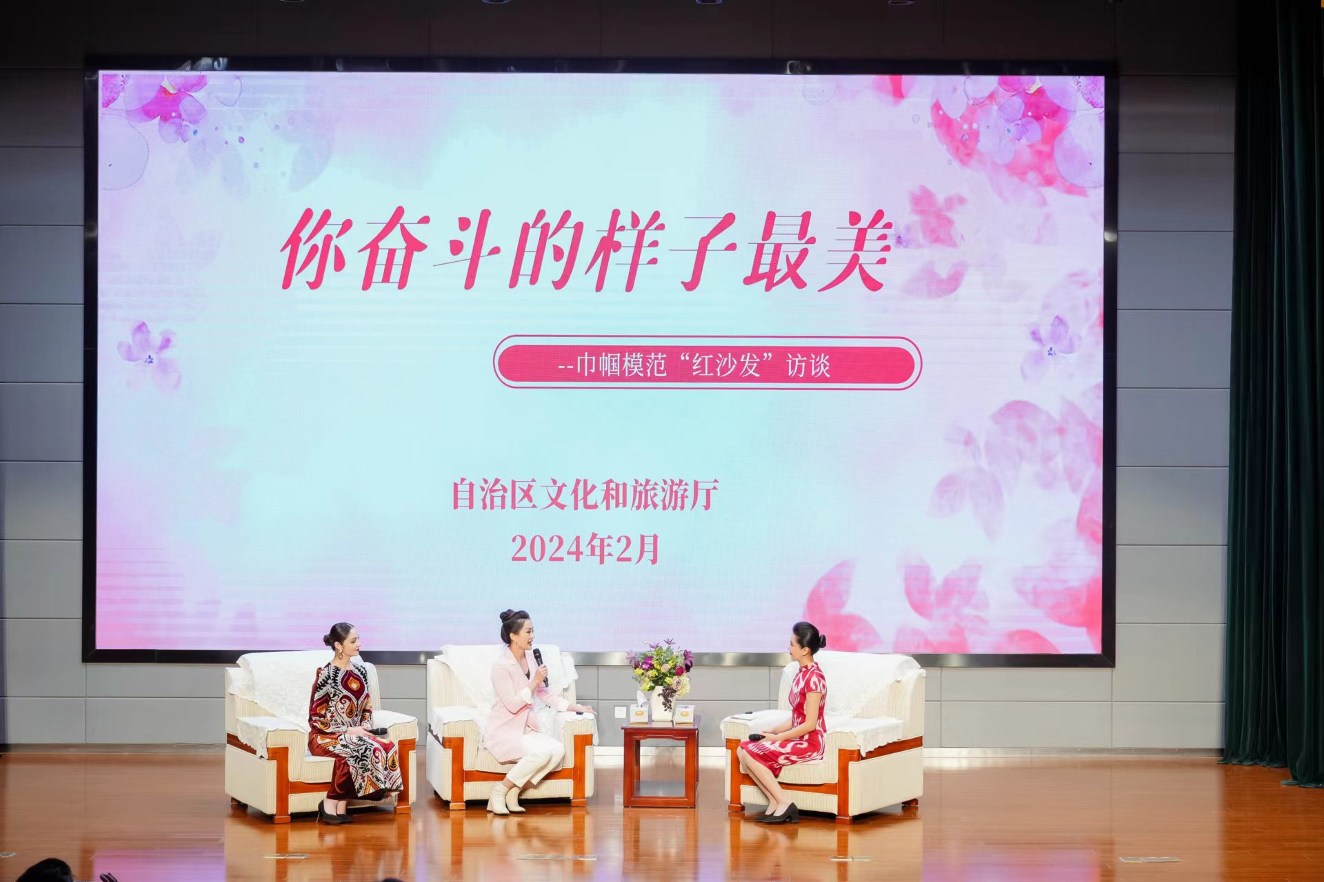在巾帼模范“红沙发”访谈--“你奋斗的样子最美”暨“玫瑰书香”女职工主题阅读活动启动仪式上,马依热·艾买提江分享了她参加2024年春晚喀什分会场特别节目—《美在新疆》担任《我的爱献给祖国母亲》领舞的激动与自豪。岳露讲述了她参与《掀起你的盖头来--新疆是个好地方》国内巡演和境外演出时的盛况。与此同时,“职工书屋”授牌仪式、好书推荐捐赠仪式“玫瑰书香”女职工主题阅读活动等也正式启动,激发了妇女干部职工“建功新时代、奋进新征程”的热情与信心。