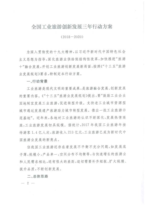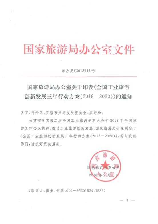 现将《国家旅游局办公室关于印发<全国工业旅游创新发展三年行动方案(2018——2020)>的通知》(旅办发〔2018〕46号)印发你们,请各地按照文件要求认真贯彻落实。